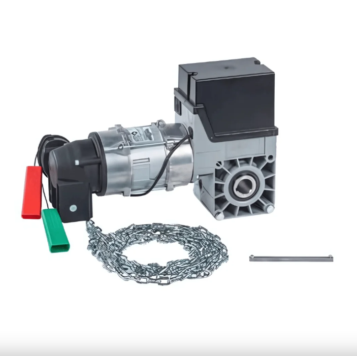 Motorul dezvoltă un cuplu de 55 Nm, fiind potrivit pentru uși cu suprafață de până la 20 m². Sistemul include deblocare manuală cu șnur, asigurând funcționarea în caz de pană de curent sau situații de urgență.